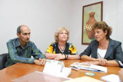 | Los cubanos José María Ameneiros y Heidi Trujillo junto a la vicerrectora Cecilia Conci |