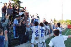 | Postal albiazul. Argentino, escolta de Rivadavia, viene de vencer a Colón, en Arroyo Cabral, donde desató la euforia con su gente |