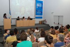| De izquiera a derecha, las panelistas Magalí Castro, Rosana Calneggia y Nora Landart. Fabiana León fue la maestra de ceremonias |