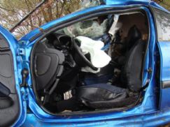| 1- Así quedó el asiento del conductor del Peugeot 206 de la joven comerciante de Etruria. 2- Así quedó el auto tras impactar contra el árbol |