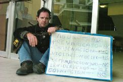 | Carlos Rubén Delannoy, encadenado a las puertas de Tribunales, reclama que le permitan ver a sus hijos. Era el 16 de marzo de 2007 |
