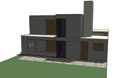 Desarrollado entre medianeras, se trabajó con una volumetría pura, sin simetrías formales, con composición simple y en dos plantas.