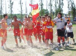 | Los chicos de la octava división de Asociación Española celebran la obtención del Clausura con la vuelta olímpica |
