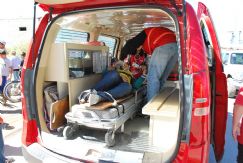 | Personal médico asiste a la motociclista herida dentro de la ambulancia de los Bomberos |