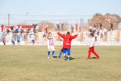 1) El partido ha terminado y el festejo villamariense se desata adentro y afuera de la cancha, entre jugadores y el pequeño grupo de simpatizantes que viajó más de mil kilómetros para alentar al equipo