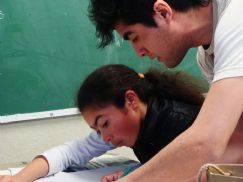 | Diego Carriazo dicta dos talleres. En la foto está con una alumna |