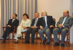 | El rector Gill, la vicerectora Conci, y los decanos de Humanas, Negretti; de Sociales, Paredes y de Básicas y Aplicadas, Traverso, en un momento del acto celebrado anoche |