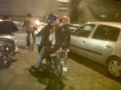 | Tres en moto, pero al menos con casco. La escena fue captada por EL DIARIO durante el fin de semana. La mayoría de quienes estaban a su lado lo hacía sin casco protector |