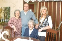 | Josefa rodeada de su nieta Analía, su hijo Enelio y su nuera Blanca (vive con el matrimonio) |