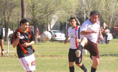 | Un instante del encuentro entre Construcciones Taborda y Combustibles y Lubricantes Alto Alegre, con victoria del segundo por 1-0 - El delantero de Míster Dog/Embragues Barrera, Lucas Taddey, elude la marca de un rival y encara hacia el arco |