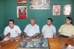 | Juan Reynoso, Marcelo Domínguez, Elías Gismondi e Ignacio Galasso durante la conferencia ofrecida ayer por el San Martín |