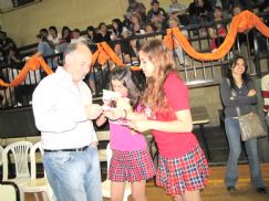 En las Olimpíadas, en el Salón de los Deportes, el intendente de Villa María recibió ayer la vacunación simbólica por parte de los chicos de la campaña “Un trato por el buen trato”