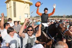 Caballo y jockey villamarienses brillaron ayer en el Hipódromo de barrio Jardín de la capital, al imponerse en el tradicional 71mo. Clásico de San Jerónimo. Storm Donoso, con la monta de Facundo Ortiz, ganó ayer por cinco cuerpos y medio sobre Golden Success el clásico de San Jerónimo, una prueba de 2.000 metros corrida en el noveno turno de la reunión de San Isidro. La prueba fue televisada en simultáneo en Córdoba y Buenos Aires y el ganador se llevó un premio de 45 mil pesos. El clásico San Jerónimo tiene un nuevo ganador. En un colmado Jockey Club Córdoba, Storm Donoso se impuso por cinco cuerpos y medio y se quedó con la máxima cita del hipismo cordobés, en su 71º edición. El jockey villamariense Facundo Ortiz fue quien guió al ganador hacia la meta, con un tiempo de 2m 05s 93/100. El nuevo dueño del Clásico más importante de la provincia de Córdoba pagó 5.25 pesos por cada unidad apostada. Golden Success llegó segundo ante la atenta mirada de las cerca de siete mil personas que se reunieron en el club hípico para ver una jornada plena de actividades, con 19 carreras. El cuidador de Storm Donoso, del stud Chazón de Villa María, es Edgardo Zuin. El momento clave de la carrera sucedió en los 350 metros finales, en donde Storm Donoso atropelló con gran decisión y se fue solito hacia el disco ante la impotencia de sus rivales. "Cuando lo moví, el caballo salió con todo y ganamos con mucha claridad", dijo el jinete Ortiz. Tercero, a un cuerpo de Golden Success, entró Tapado Sam. Esta fue la quinta victoria oficial de Storm Donoso sobre un total de 15 presentaciones. Cabe destacar que el caballo y jockey que ganaron el Clásico San Jerónimo, hicieron lo mismo hace menos de un mes en el Hipódromo de esta ciudad, cuando se impusieron en el Clásico 144º Aniversario de la Fundación de Villa María.