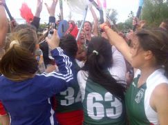 | El festejo de las menores del Jockey. Golearon en la primera final del torneo de Damas C |
