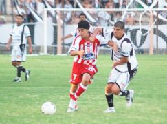 | Con esfuerzo. Alexander Lucero trata de zafar de la marca de Paglioni. El delantero, esta vez, no fue desequilibrante y terminó jugando en el medio |