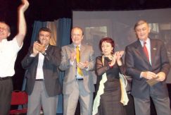 | Walter Nostrala, Jorge Valinotto, Norma Morandini y Hermes Binner en el escenario |