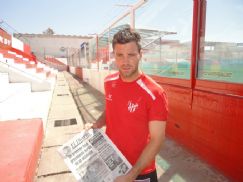 | Chiarini posa con un ejemplar de EL DIARIO en la cancha de Instituto. El reposo del líder |