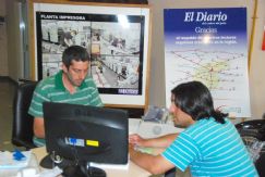 | Un compañero atendiendo a la gente, que acude a pautar clasificados o a hablar con periodistas |