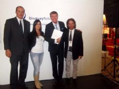 | Fernando Tigero (a la derecha) junto a Pancho Dotto y representantes de la localidad uruguaya |
