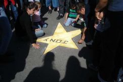 | Inmenso dolor. Villamarienses pintando la estrella de un adolescente fallecido recientemente |