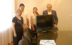 El intendente Hugo Graieb fue el encargado de adjudicar al ganador un LCD Philips de 32 pulgadas, el beneficiado Luis Fabro de la zona rural de James Craik, quien compró el Bono en la Escuela Ricardo Rojas de Campo Rossi.