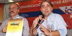 | Turraca, junto al ministro de Trabajo Tomada, en la presentación de “Periodismo con valores” en Buenos Aires |