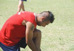 | Rosales, con tatuaje del Che en el brazo, durante la práctica de Alumni |