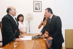 | Rafael Sachetto jura ante Escamilla. Será el jefe del bloque. En la siguiente foto, Accastello felicita a Graciela Zayas. Y en la última, Liliana Ghisolfi recibe el afecto de sus compañeras |