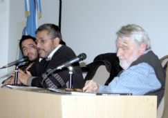 | Jesús Chirino (centro) junto a Osvaldo Bayer (derecha), durante una conferencia - El historiador, periodista y escritor Osvaldo Bayer |