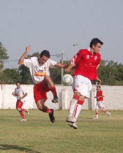 | Abate Daga y Mayco Rodríguez comparten el salto, pero no la pelota. El partido fue entretenido |