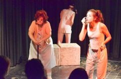 En escena se pudieron apreciar destacadas performances de varios de los integrantes del elenco (muchos de ellos, de la anterior producción), que tuvieron a su cargo la compleja tarea de poner el cuerpo a pacientes de un neuropsiquiátrico. Jugando con los bordes de la locura y el encierro como política de marginación y abolición consensuada de los derechos, los actores -con buen uso del cuerpo y el espacio, entrando por detrás del público- plantearon situaciones reflexivas y otras de mordaz comicidad. Ese delirio provocado llevaba a frases tan redondas como “la única iglesia que me iluminó fue la que incendié dos meses atrás antes de que me encerraran acá”. El elenco estuvo compuesto por Laura Gómez, Franco Manzanelli, Rebeca Cena, Celeste Giordano, Florencia Bergia, Sofía Ceballos, Eliana Costa, Leonardo Castillo y Julio Albil. En la entrada, además, se expuso una muestra fotográfica alusiva a cargo de Pato Mercado y Agostina Correa Sella.