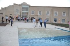 | Funcionarios, propietarios, prensa e invitados, de espaldas a la imponente infraestructura del nuevo hotel villamariense. F2: Montagner y Accastello en la recorrida por las instalaciones del nuevo emprendimiento |