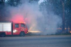 También ayer, pero a las 4.30 de la madrugada, los servidores debieron sofocar un incendio de pastizales declarado a un costado de las vías del ferrocarril que corren paralelas a la ruta nacional 158, frente al predio de Atilra.
