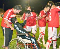 El pibe, que padece desde hace tiempo diversas enfermedades que le afectan la motricidad fue empujado al campo de juego por el utilero del equipo, Sergio Giovaninni, “el Percha”.