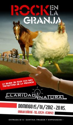 El próximo domingo, desde las 20, en Granja Educativa Cuñataí (Solares del Tercero), se concretará el evento denominado “Rock en la Granja” con la actuación del mítico grupo de la ciudad de Bell Ville, “Claridad Natural”.