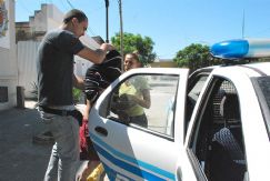 Fotografías: 1) El sospechoso, en momentos en que es introducido al móvil policial para ser trasladado