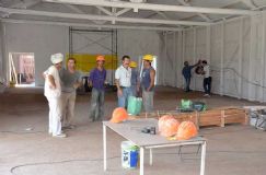 | Trabajos de pintura y pulido de pisos realizan los operarios de la empresa constructora |