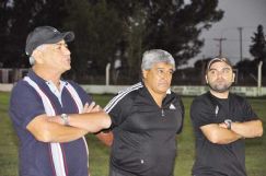 | Mazzini, escoltado por Luis Ortega y Juan Airaldi, durante la primera práctica del “Tricolor” con vistas al próximo torneo Apertura de la Liga Villamariense de Fútbol |