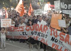 | Los manifestantes marcharon por Bell Ville pidiendo respuestas a la crisis crónica que padece el Hospital Ceballos |