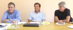 | Rodríguez, Vaca Narvaja y Fernández, durante la primera reunión de la comisión Cuatripartita celebrada en Villa María |