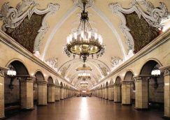| Una de las estaciones del metro de Moscú, a la que llaman el palacio subterráneo. F2: Catedral de San Basilio, en el centro de la plaza Roja de Moscú. F3: Jardín del Palacio de Peterhof, con sus estatuas doradas |