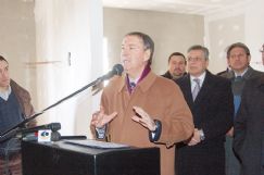 | Héctor Muñoz, detrás del ex gobernador Schiaretti, cuando éste visitó la obra del nuevo nosocomio |