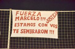 Si bien los hinchas de Alumni siguieron con sus cánticos habituales, frente a ellos apareció el trapo con la siguiente inscripción: “Fuerza Marcelo, estamos con vos. Justicia. Te sembraron!!!”, haciendo alusión a la cocaína detectada en la morada de “Canchincha”.