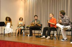 Un día después de haber brindado un taller de ritmos cariocas en el Campus Universitario, el grupo recreó un selecto repertorio -dividido en partes- de sambas y choros, en el marco de un recital refinado y didáctico. Al centro del conjunto se encontraba Renato Borghi, el músico oriundo de Riberao Preto que desde hace un tiempo está cursando la carrera de Música en la UNVM. Gracias a su conocimiento del español, Borghi se dirigió al público en repetidas veces, introduciendo las obras y sus autores, además de explicar el recorrido de los estilos. “El choro es más bien una música urbana de Río”, comentó al pasar antes de internarse en la nostálgica sonoridad, creada mediante una pandereta, cavaquinho y guitarra. La formación estuvo integrada además por: Mauricio Guastavino, Flora Milito, Alba Alessandra (una maravillosa cantante), Paulo Almeida (quien aportó en percusiones como el pandeiro, surdo, tamborim, ganzá) y Pedro Cantalice (mandolina).