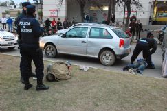 | Viernes 12 de agosto, 18 horas. Cavallari (detrás del VW Gol) y Unanue yacen esposados. Del interior del rodado la Policía secuestró dos revólveres y por ese episodio “Mapache” fue condenado en la víspera |