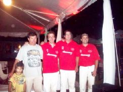 | Ganadores. Marcelo (hijo de Coatí), Carlos “Coatí” Ramos, Martín Villanueva, Roberto Díaz y Lorenzo Gilli, la delegación local que triunfó en Ascochinga |