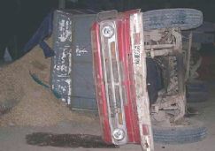 Un camión Dodge (foto) cargado con cáscara de maní protagonizó un vuelco en la esquina de La Rioja y pasaje Lavalle de la ciudad de General Deheza, informó Cadena Ser Argentina. El rodado de gran porte era conducido por Ernesto David Lucero, de 24 años de edad, domiciliado en la misma localidad. Afortunadamente no hubo que lamentar lesiones, aunque sí daños materiales en el vehículo, en el derramamiento de la carga sobre la carpeta asfáltica.