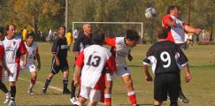 | 1- El defensor de Unión Eléctrica salta a cabecear para sacar el peligro de su área ante un ataque del líder, Villa María Repuestos. 2- Scania/Urbani, que igualó con Transporte Quevedo. 3- Transporte Quevedo |
