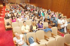 | Un pasaje de la reunión científica en el auditorio de calle Entre Ríos |