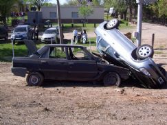 El Chevrolet quedó encima de un vehículo abandonado que había sufrido un siniestro de iguales características tiempo atrás y que aún no ha sido removido.